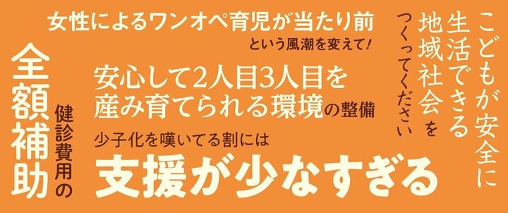 大臣:いろいろなことをやっていきます。たとえば未就園児の支援。保育園や幼稚園に定期的に預けている家庭以外でも一時預かりを利用しやすくしたいと思っています。