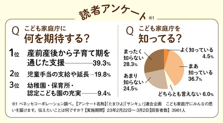 こどもを取り巻く多くの問題を解決させるべく、4月1日に発足したこども家庭庁。疑問や期待、何をしてほしいかなどについて、子育て真っ最中のサンキュ!アンバサダーと『たまひよ』読者、両誌編集長が、こども家庭庁担当大臣の小倉將信さんに3981人の“リアルな声”を届けてきました。大臣が考える日本の未来についても聞きました!